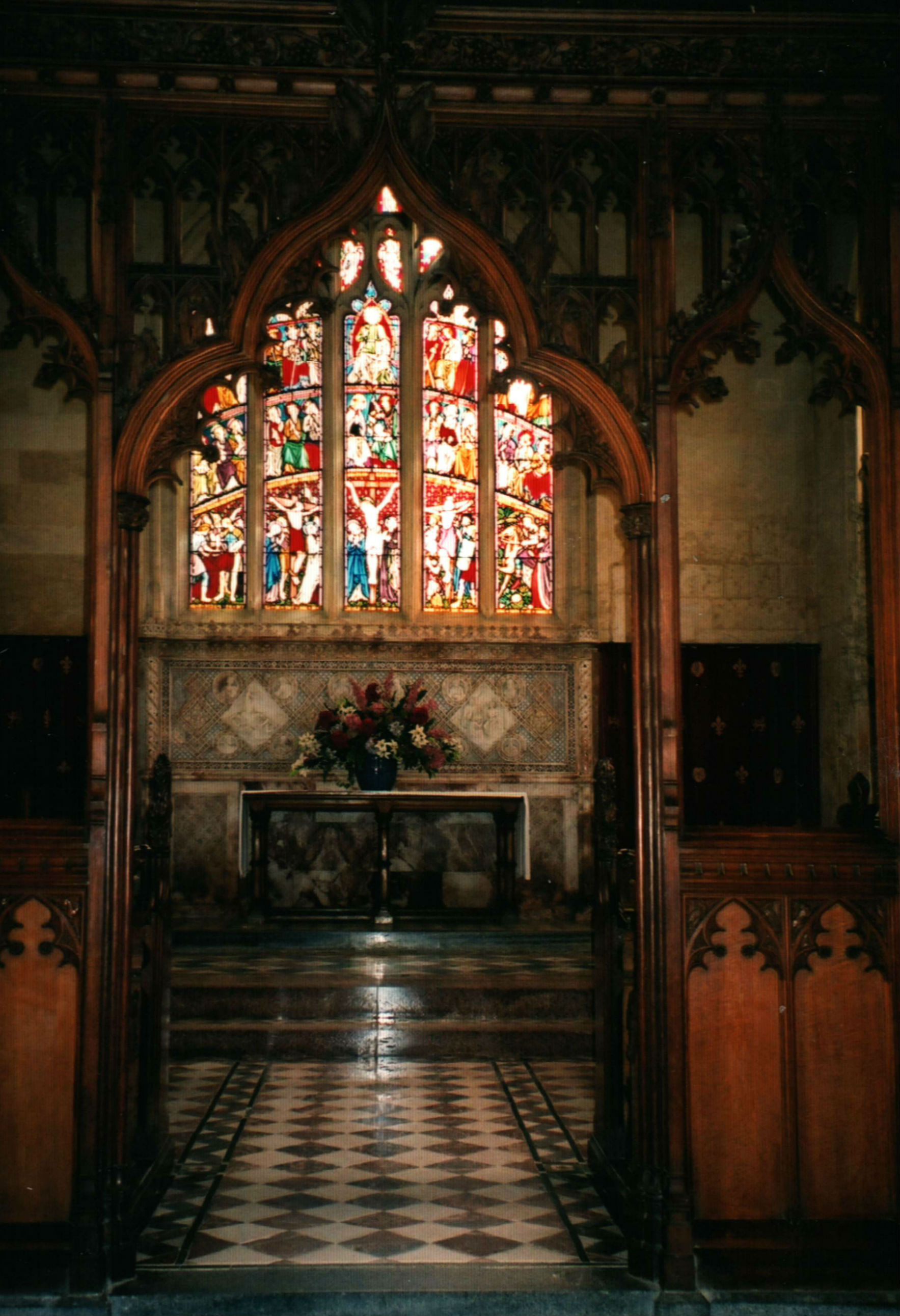 Above left: Sudeley Castle, and right: West Front of the Chapel. Below: Choir and Sanctuary.